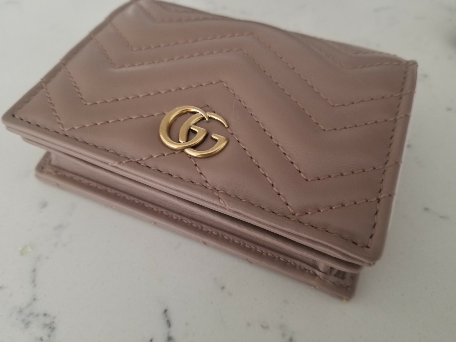 New Gucci Gg Marmont Card Case Wallet Dusty Pink Leather Ebay